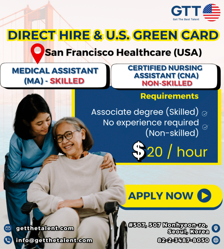 In the USA, we provide EB-3 visa sponsorship, which means you receive a Green Card upon arrival.