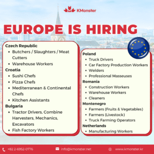 At K-Monster, we specialize in connecting individuals with meaningful job opportunities across the globe. Whether you’re looking to build a career in Canada, Europe, or the USA, we offer a wide range of programs tailored to your goals, qualifications, and financial situation.Our experienced consultants take the time to understand your background, preferences, and long-term aspirations. From there, we recommend the most suitable pathway—whether it’s for employment, education, or permanent relocation.But we don’t stop at job placement. We are deeply invested in your long-term success and overall well-being, including support for your entire family. From initial consultation to settlement assistance, we’re with you every step of the way.
